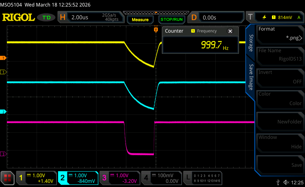 しかしオシロスコープでは、少し波形が残っています。